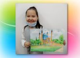 Название работ – «Мечеть им. Машхур Жусупа», «Чертово колесо», «Деревья в лоскутках», «Дом с часами», «Набережная»