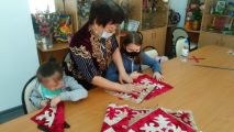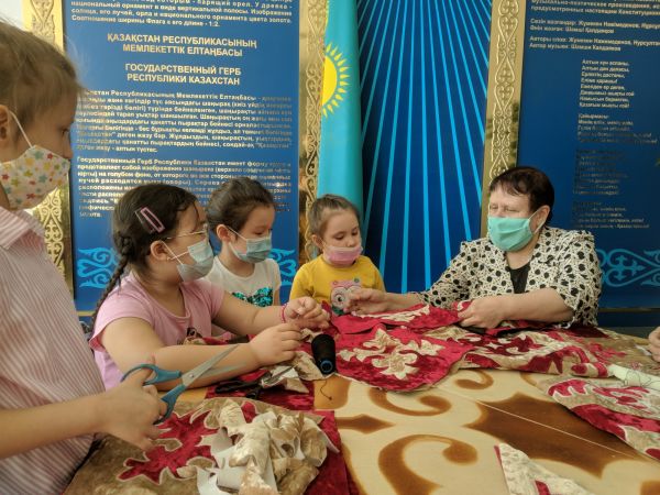 В рамках спецпроекта «Дәстүр мен ғұрып» с 1 апреля в Детской технической школе началась неделя путешествий «Дәстүр travel». Сегодня ребята отправились на станцию «Шебер station». Здесь они посетилимини выставку «Көрпе eksposition» и поучаствовали в мастер-классе по изготовлению национальных узоров. Итогом плодотворного дня стало сшитое национальное одеяло из лоскутков.
