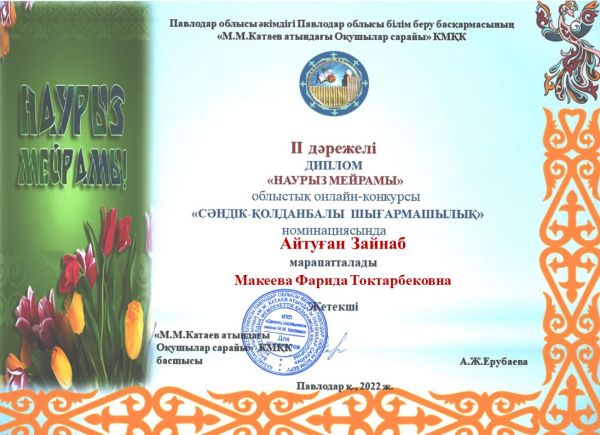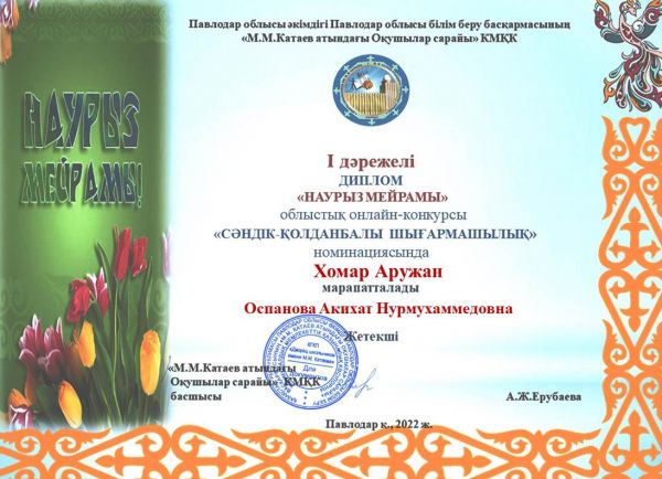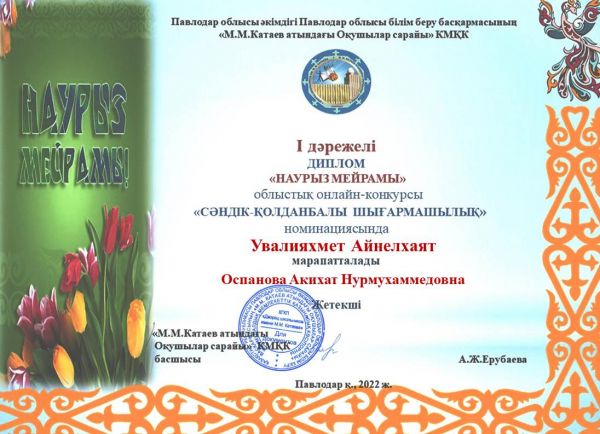 Поздравляем воспитанников и руководителей кружков, занявших призовые места в областном конкурсе декоративно-прикладного творчества «НАУРЫЗ МЕЙРАМЫ»