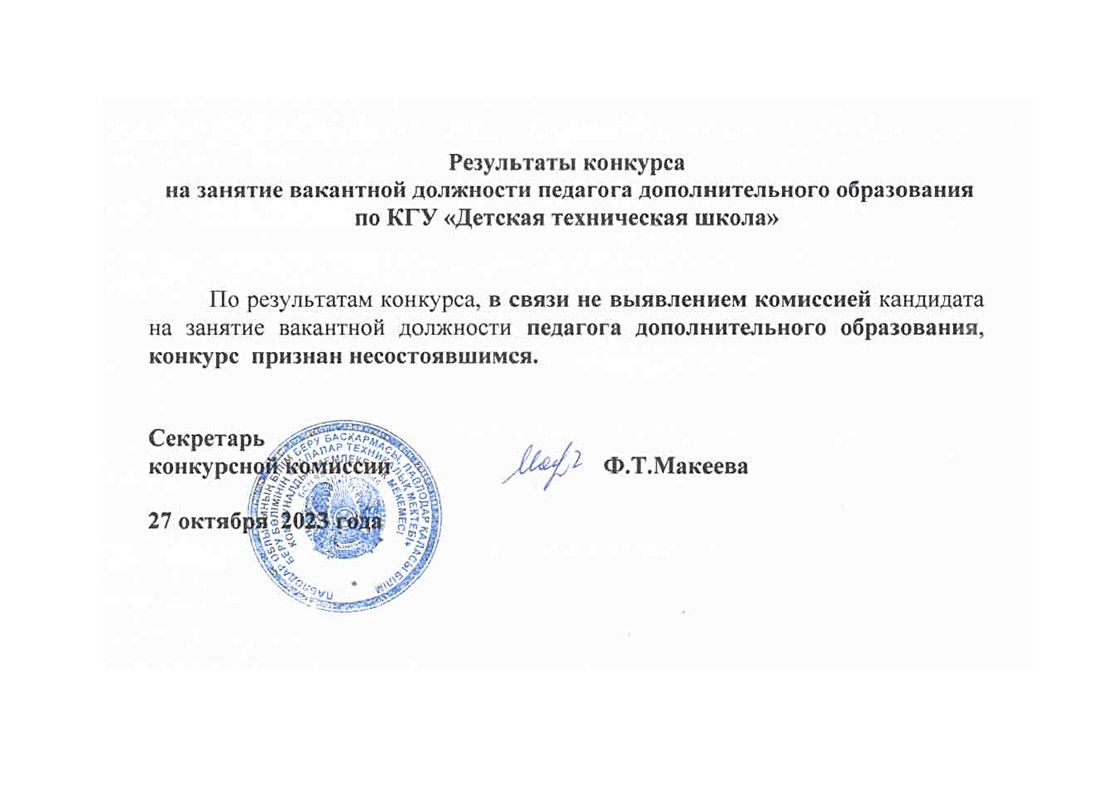 Объявляет конкурс на временно вакантную должность педагога дополнительного образования технического отдела (до 10 мая 2024 года)