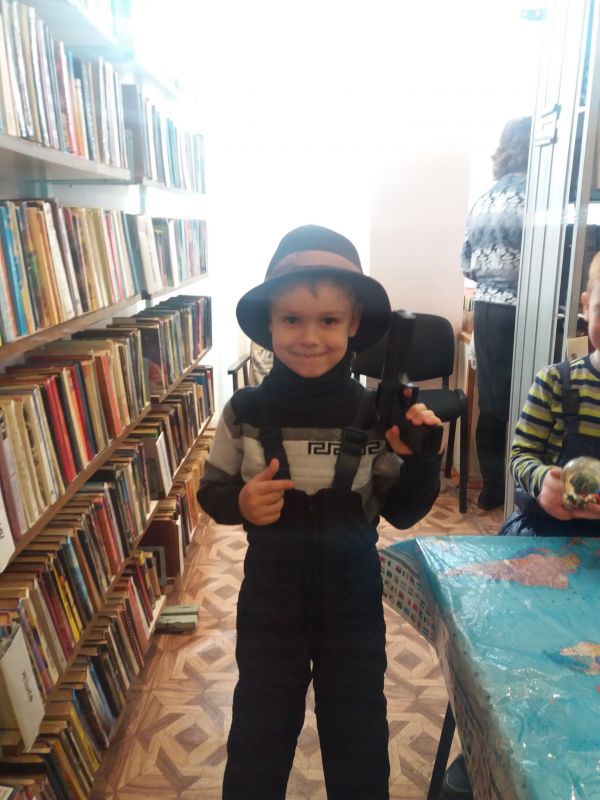 Удержать долго на месте детей было просто невозможно, поэтому экскурсия по библиотеке вызвала небывалый восторг. Выставки-инсталляции «Из жизни принцесс», «Морская баллада свободы», «Тайна Черного котёнка» и детская машинка «Авто-книга» отрыли для ребят настоящую «страну чудес». Необычные предметы, разложенные между книгами, загипнотизировали ребят – всем хотелось всё потрогать, повертеть в руках, поиграть с куклами – принцессами, полистать книги, прикоснуться к настоящей морской звезде, ракушкам. Всем захотелось примерить чёрную шляпу, подержать в руках пневматический пистолет (без пулек, естественно), чтобы почувствовать себя настоящими сыщиками. Любители машинок стали активно катать по библиотеке «авто-книгу» со сказками. Мы едва успевали за нашими воспитанниками.