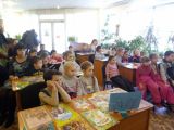Продолжением мероприятия стала сказочная викторина «Кто в тереме живёт», на все вопросы которой дети отвечали дружно хором, иногда не дослушав вопрос до конца. Спасибо родителям и воспитателям – эти дети отлично знают и помнят многие сказки.Видеоклипы «Возьмите в руки книги»,«Книги верные друзья», «Читайте»показанные на экране компьютера, продолжил тему чтения книг. Сразу стало заметно, как нам не хватает большого экрана.