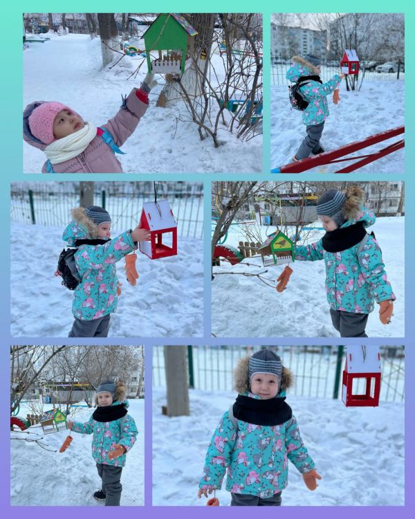 Біздің балабақшада "Құстарға қамқорлық" акциясы ұйымдастырылды. Акцияның мақсаты құстарға қамкорлық, адамгершілікпен қарауға тәрбиелеу, оларды қорғауға деген қызығушылыққа баулуға ынталандыру. Осы акция балаларды мейірімділікке және қамқорлыққа үйретеді. Мектепке дейінгі жастан бастап құстардың өміріне қатысады және бұл әрекетке ата- аналарды тартады. Акцияға қатысушылар балалар, ата- аналар және тәрбиешілер. Акция аясында әр түрлі, өзіндік ерекше үйшіктер жасалды. Тәрбиешілер балалармен  бірге үйшіктерді балабақша аумағына ілді, ал ата- аналар балалармен аулаға, саябақтарға. Күн сайын тәрбиеленушілер қыстайтын құстарға жем шашады, оларды жақындап бақылайды, сосын топта тәрбиешілер және балалар қанатты достары туралы әңгімелеседі. Әр бала өзінің алған әсерімен бөліседі. Біздің тәрбиеленушілерді игі істер жасау мүмкіндігі қуантады.