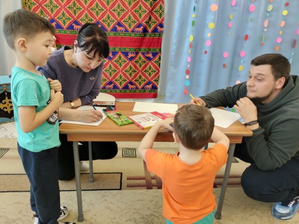 Ата - анамен балалар арасындағы түсінушілікті дамыту және бекіту мақсатында біздің балабақшаның психологі Байжуманова Г.П. "Біз біргеміз" ойын тренингін өткізді. Тренинг мына жаттығулардан тұрды: "Есімі", "Махаббат күншуағы", "Балалық емес тиымдар", " Екеуі фломастермен" және басқа да. Ойын тренингі барысында балалар мен ата- аналар өз көзқарастарын белсенділікпен білдірді, сезімдерімен ашық бөлісіп, табыстарын және қиындыктарын талдады. Қатысушылар арасындағы мейірімділік жақсы эмоция алуға мүмкіндік берді.