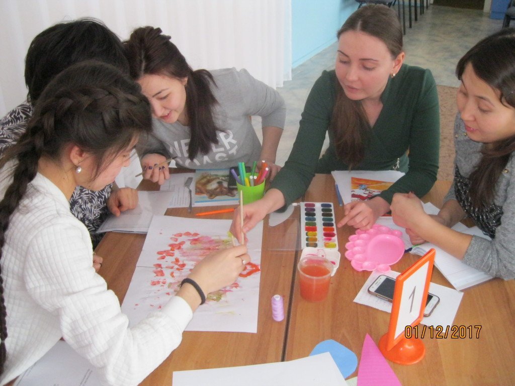 2017 жылдың 12 қаңтарында "Мектепке дейінгі балалардың дамуында сахыналау әрекетінің өзектілігі" тақырыбына педагогикалық кеңес өтті. Педагогтер баяндама тыңдап, іскерлік ойын ойнауы, театр түрлерінің тұсаукесерін өткізді. Нәтижесінде осы іс - әрекеттерінен қанағаттандырарлық әсер алды.