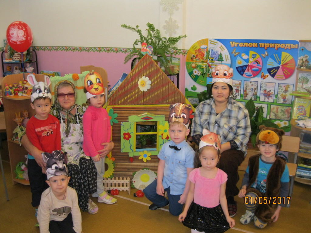Воспитатель средней группы Камалетдинова Г.Г. провела занятие "По следам сказки". Дети на воздушном шаре прилетели на сказочную полянку. Они отгадывали загадки, играли в игру "Мимика". Занятие закончилось постановкой сказки "Колобок". В заключении дети пригласили гостей на следующую постановку сказки.