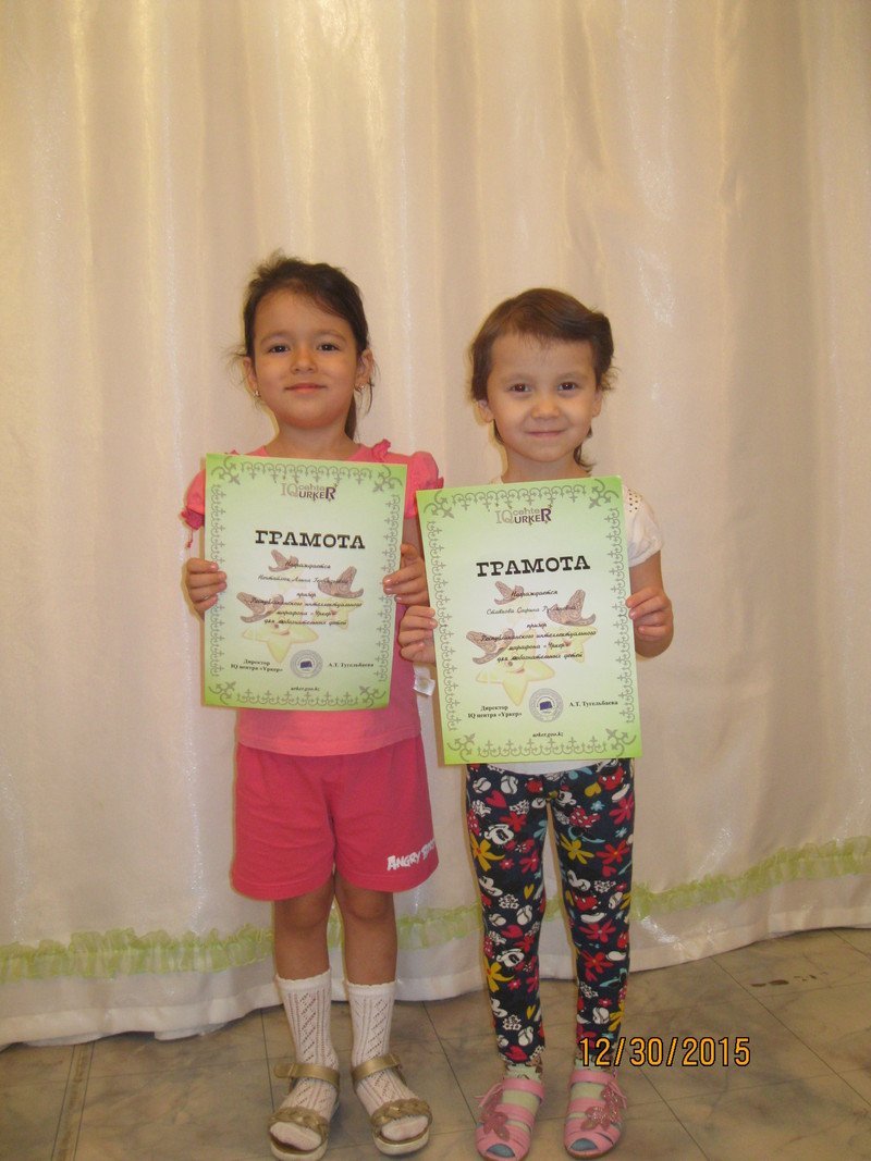 Сегодняшние достижения детей – залог будущего успешного развития Казахстана. Наши воспитанники радуют нас своими активными участиями. И вновь победителями Республиканского интеллектуального марафона «Үркер» стали воспитанницы старших групп Ставкова Сафина,и Нечтайлюк Алина. Они награждены дипломами и памятными подарками от «Үркер». Педагоги, подготовившие детей к Республиканскому интеллектуальному конкурсу, были награждены дипломами и благодарственными письмами за подготовку детей. Желаем успехов нашим педагогам и воспитанникам достигнувших таких высот.