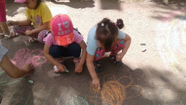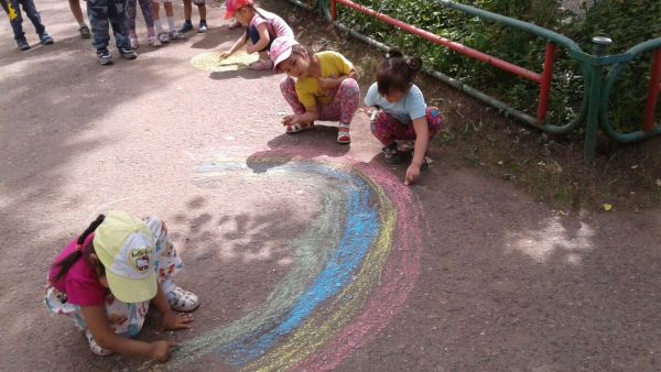 Міне, қызықты, жайдары жаз да келді! Балалар уақытының көбін таза ауада, далада өткізеді. Серуен кезінде балалар асфальт үстіне сурет салуға ынталары ауды. Балалардың ұжымдық жұмысының нәтижесін байқау сәті де келіп жетті. Балалардың бар ынтасымен сурет салуға қызыққаны сонша, тапсырманы орындап қана қоймай, өздерінің қиялын да қоса бере білді. Олар өткізілген байқау туралы жақсы көңілмен суреттеп айтып берді.