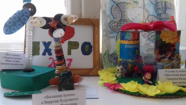 В детском саду прошла выставка поделок, посвященная ЕХРО - 2017 "Энергия будущего". В выставке приняли участие воспитанники всех возрастных групп детского сада. Поделки были выполнены из разного материала: бросового, природного. Работы интересные и разные - это роботы, машины и здания будущего, конечно детям помогали родители.