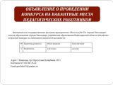 КГКП «Ясли – сад 53 города Павлодара» отдела образования города Павлодара, управления образования Павлодарской области объявляет конкурс на вакантные места. В конкурсе могут участвовать педагоги, соответствующие Типовым квалификационным характеристикам
