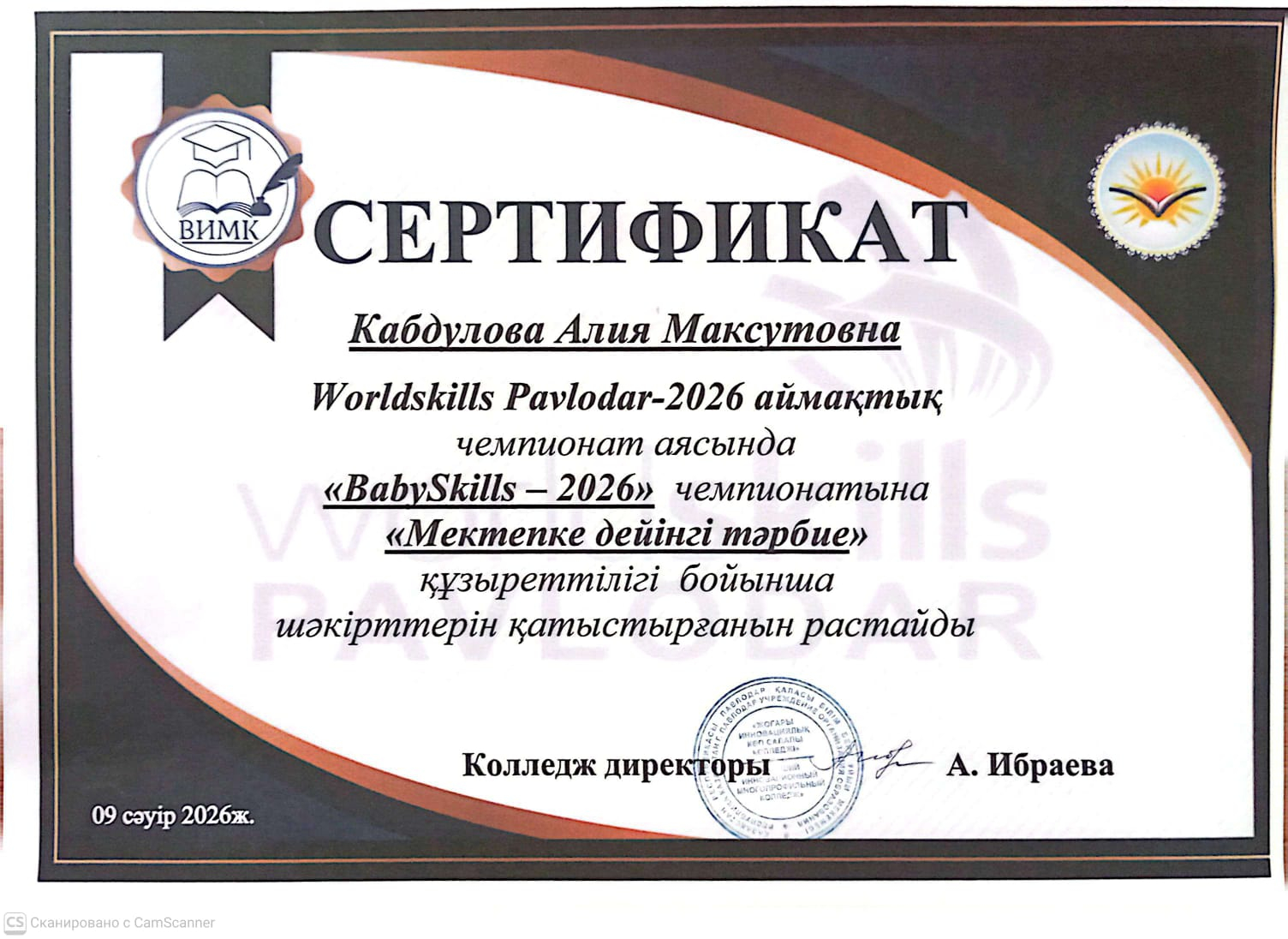 Павлодар Инновациялық университетінің 35 жылдығына орай өткізілген "Білім мен ғылым интеграциясы- болашаққа қадам" халықаралық конференциясында І орын және "ХХVI Сәтба...