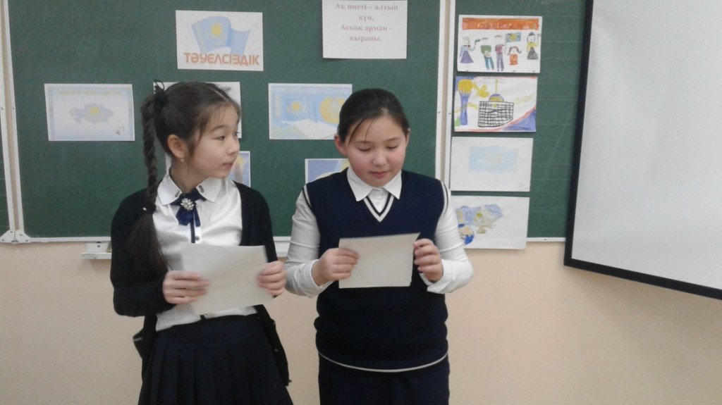Осы орайда, мектебімізде мерекеге байланысты түрлі шаралар өтуде. Оқушылар өздерінің еліне деген сүйіспеншіліктерін шығарған өлеңдері, салған суреттері, айтқан әндері арқылы дәлелдеуде.