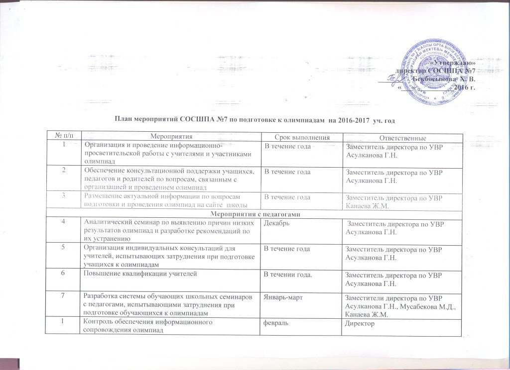 План мероприятии по подготовке к олимпиадам с одаренными детьми