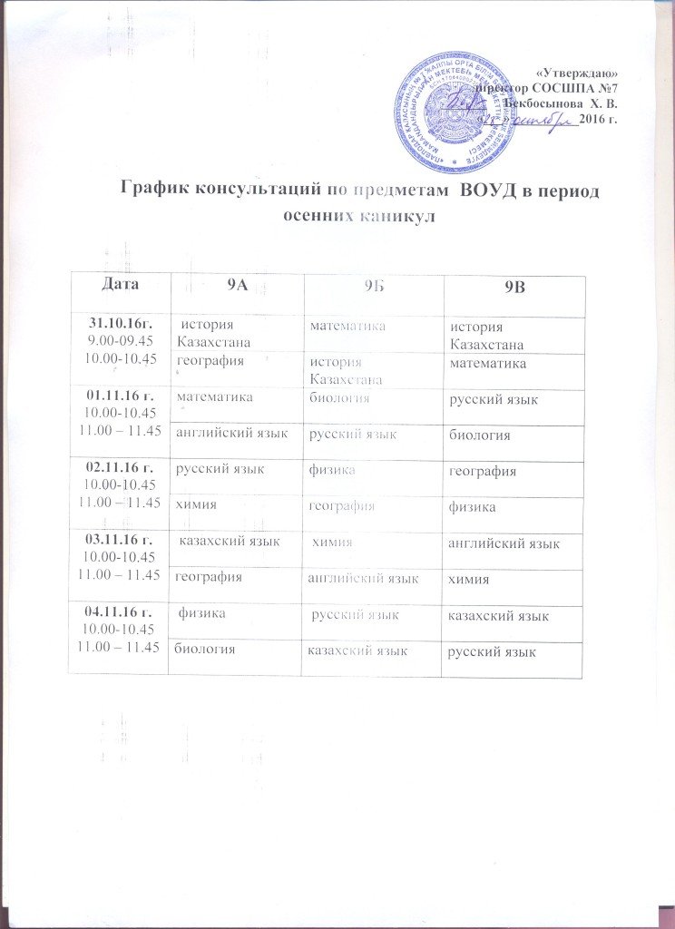 График консультации на каникулы