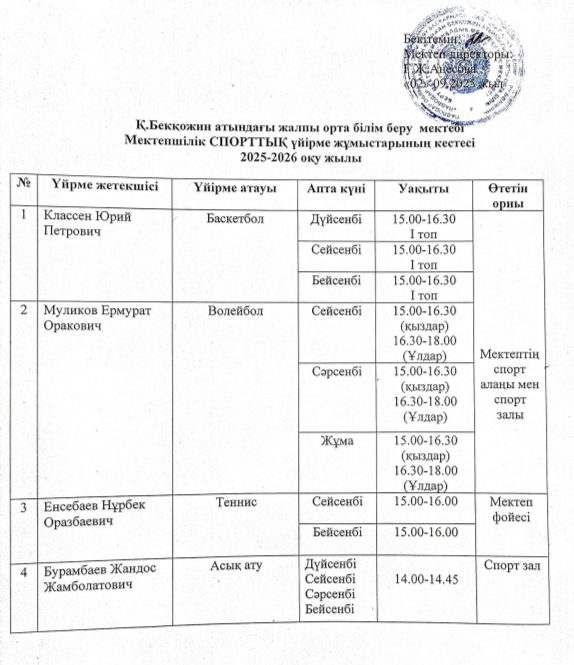 Қ. Бекқожин атындағы ЖОББМ психологиялық қызметінің перспективалық жылдық жоспары