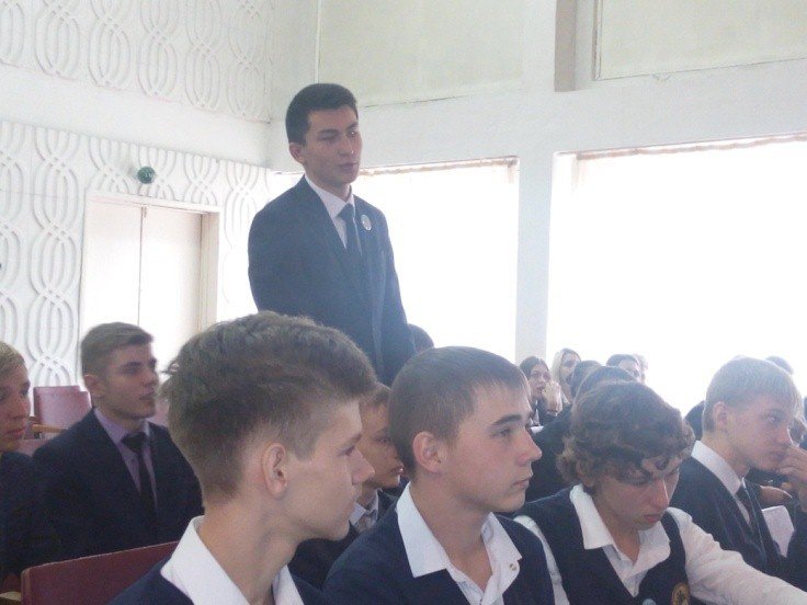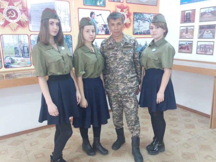 6 октября на базе средней школы № 14 совместно с общественным объединением «Әлем» для учащихся старших классов школ № 4, 5, 14, 17 прошел урок мужества «Отан қорғаушылар» Перед учениками выступил руководитель отряда «Панфиловшылар» преподаватель НВП средней №14 Утепов Б.К. Он рассказал о работе отряда в Волоколамском районе Московской области на высоте 251, где в ноябре 1941 года героически сражались солдаты, сержанты и офицеры 316 стрелковой дивизии под командованием генерал-майора И. В. Панфилова. Перед старшеклассниками выступили и представители НПО военно – патриотической направленности: председатель Совета воинов-интернационалистов Павлодарской области Майкотов Б.К., председатель Городского Военно-патриотического центра Карабаев Ж.К., учитель НВП школы №17 Омаров Д.Б. Затем гости ознакомились со школьным музеем Боевой Славы, где экскурсоводы Жданова А., Кондратюк В., Шевченко Е. познакомили присутствующих с подвигами наших земляков – А .Баймульдина, П.Дубового, совершивших подвиги в Псковской области, рассказали о бойцах 100, 101 казахской и 8 гвардейской Панфиловской дивизии, которые проявили чудеса героизма в годы Великой Отечественной войны, показали экскурсоводы и экспонаты времен Великой Отечественной войны.