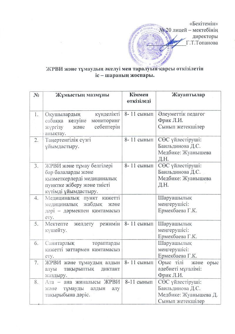 - Оқушыларға жеке гигиена ережелерін сқтау және ЖРВИ мен тұмаудың алдан алу мәселелері бойынша тақырыптық диктаннар жаздыру.