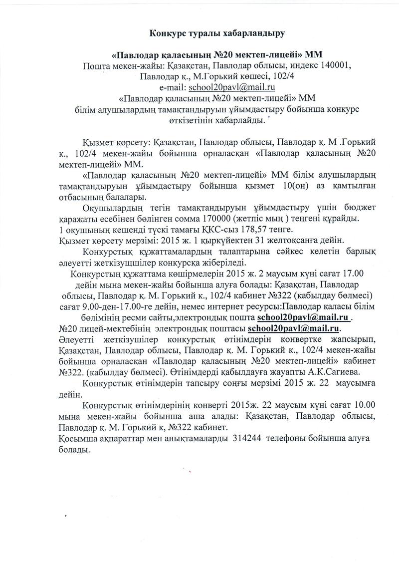 - 2020 жылға арналған Мемлекеттік сатып алу жоспары