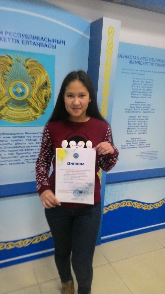В городском туре соревнований, который проходил 4 ноября 2016 года в Павлодарском государственном педагогическом институте, приняли участие 4 учащихся школы, они представили на суд конкурсного жюри научно-исследовательских работы. Конкурсным жюри в номинации «Алғашқы қадам» отмечена работа ученицы 9а класса Тауекеловой Зарины. Поздравляем! Желаем дальнейших творческих успехов!
