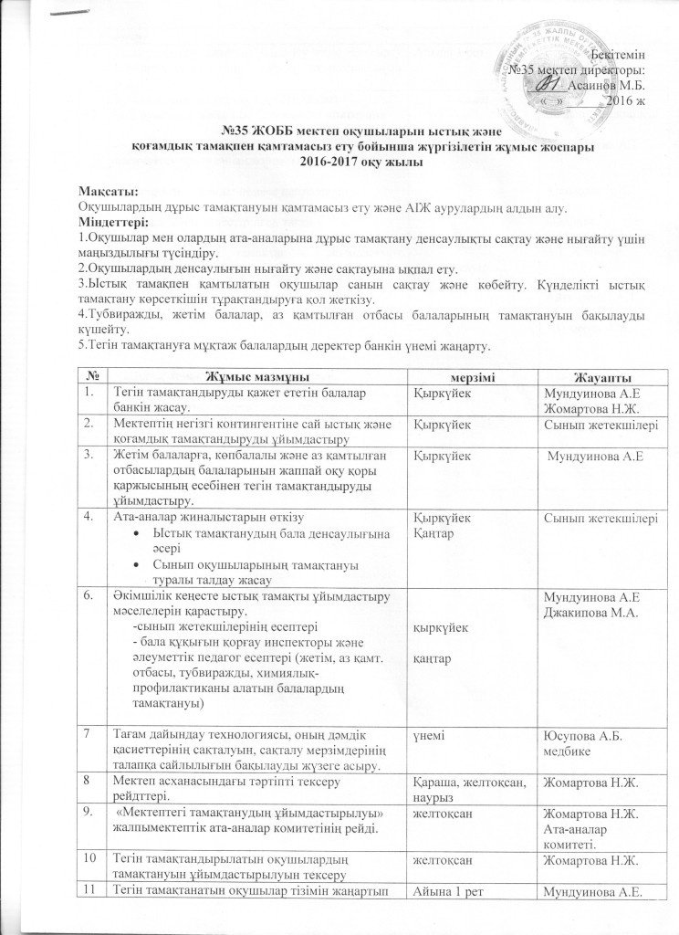 - Тамақтандыруды ұйымдастыру, мектеп комиссиясын құру, бракераждық комиссиясын құру және тегін тамақтану
