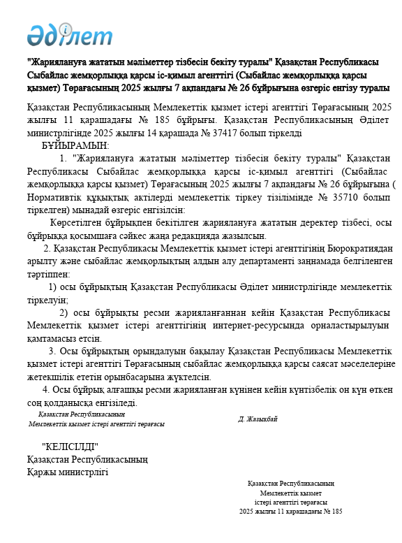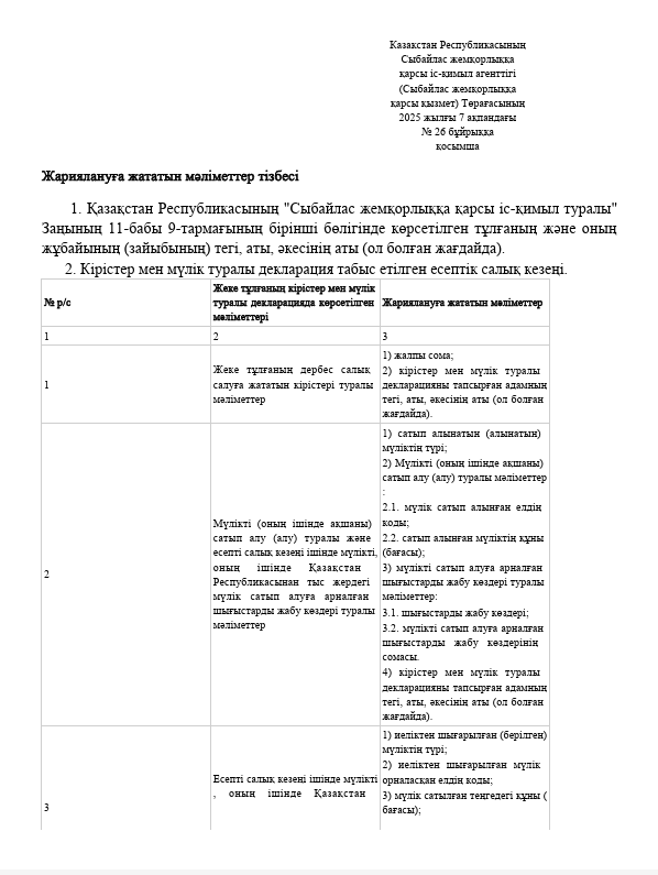 Алдағы уақытта жариялануға жататын мәліметтер туындаған жағдайда, ақпарат белгіленген тәртіппен және заңнамада көзделген мерзімдерде орналастырылатын болады.