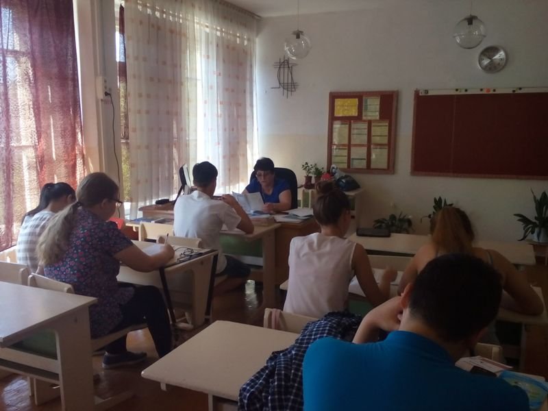 "Болашақ" отрядында жоғарғы сынып оқушылары емтихан тапсыруға қызығушылықпен дайындалуда, өткен материалды қаталауда және тесттер мен тапсырмаларды шешуде.