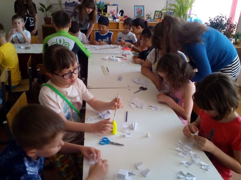 Бүгін шеберлік сынып күні. "Изонить" шығармашылық шеберханасы мектеп жанындағы лагер балаларын өзіне қонаққа шақырды. Балалар "Дымбілмес" бастырма ашық хаттарын қызығушылықпен жасады. "Қыз аруы" бейіндік отряды кішкентай балаларға қағаздан әдемі үлкен гүлдерді қалай жасау керектігін көрсетті. Мұндай шығармашылық, тәжірибелік тапсырмалардың негізгі мақсаты қолдың ұсақ моторикасын зерттеу болып табылады. Бұдан басқа балалар үлгілерді талдауды, тік бұрышты дайындамалардың өткір шеттерін дөңгелектеуге; бөлшектерді салыстыра білуді дамытуға (кіші, үлкен) үйренеді, еңбек мәдениеті, зейін және шыдамдылық қалыптасады және тәрбиеленеді. Ә қатысушы ынта мен шығармашылықты таныта отырып тәжірибе жұмысын орындады.