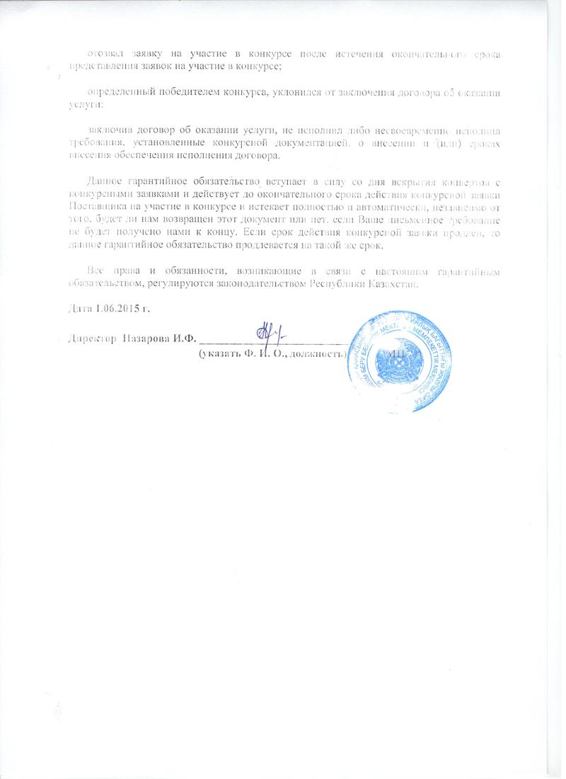 Хатқалтаны ашу хаттамасы (09.07.2015 г.) Конкурсқа қатысуға рұқсат беру хаттамсы (11.07.2015 г.) Конкурс қорытындысы туралы хаттама (13.07.2015 г.)