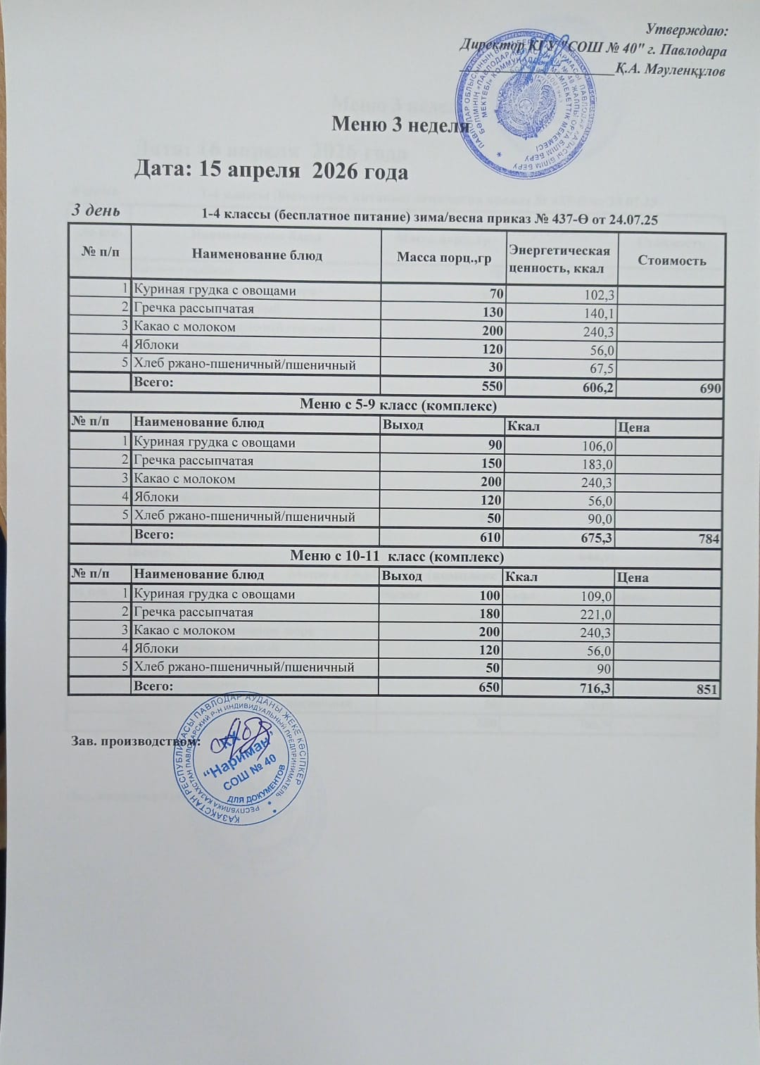 Ежедневное меню: