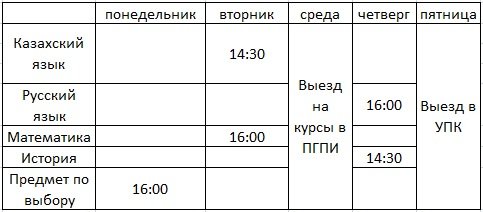Примечание:   Выезд на курсы в центр «Достык» в 11а классе в течение недели.