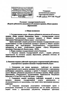 Стандарт государственной услуги «Выдача дубликатов документов об образовании»