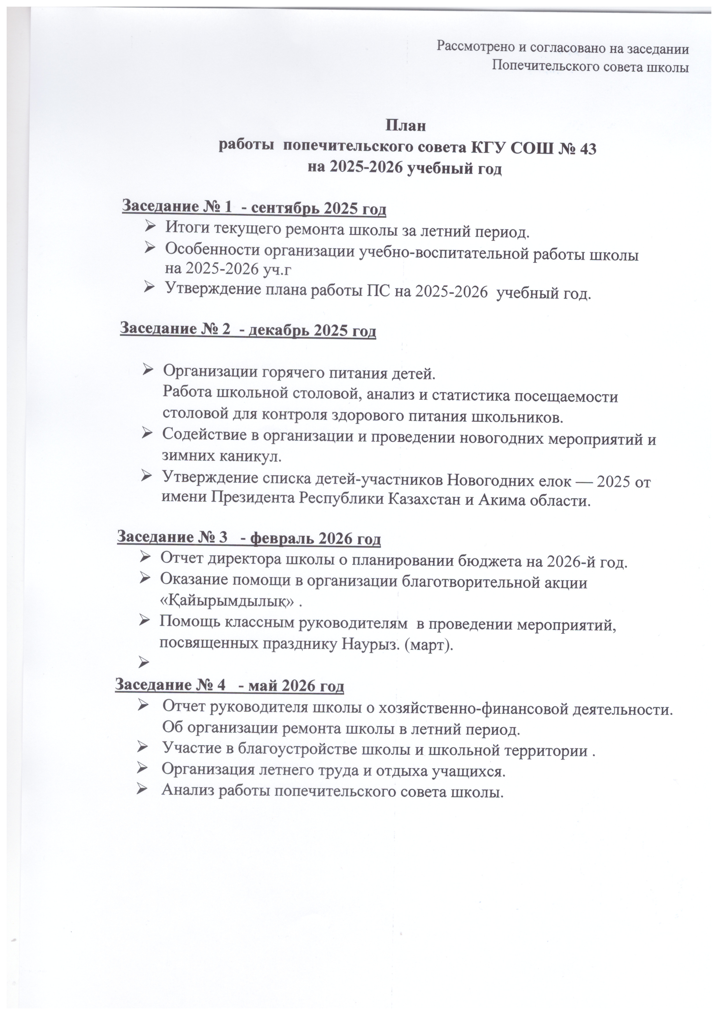 План работы попечительского совета на 2025-2026 учебный год