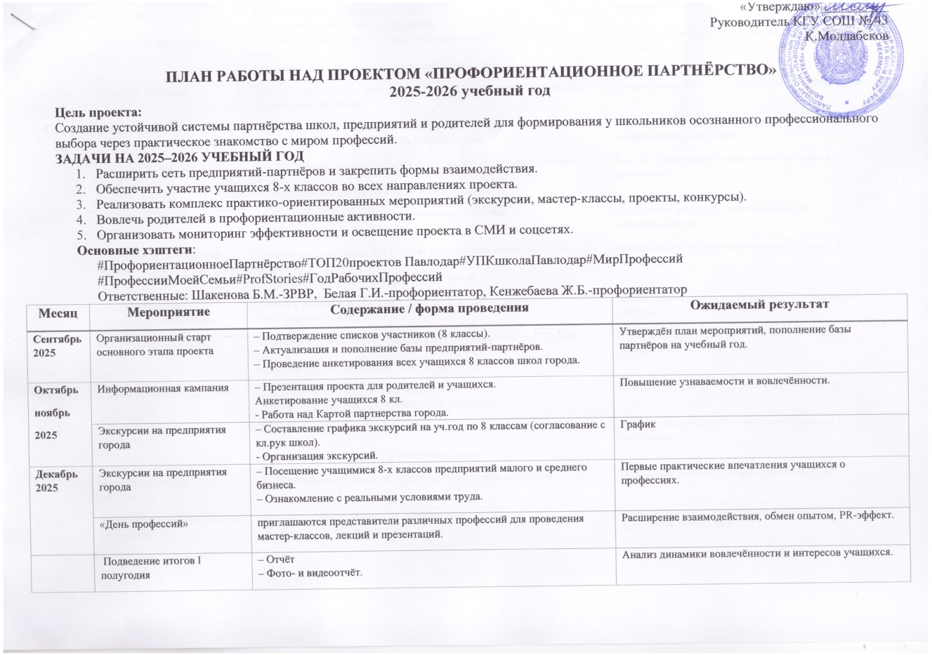 2025-2026 оқу жылына қамқоршылық кеңесінің жұмыс жоспары