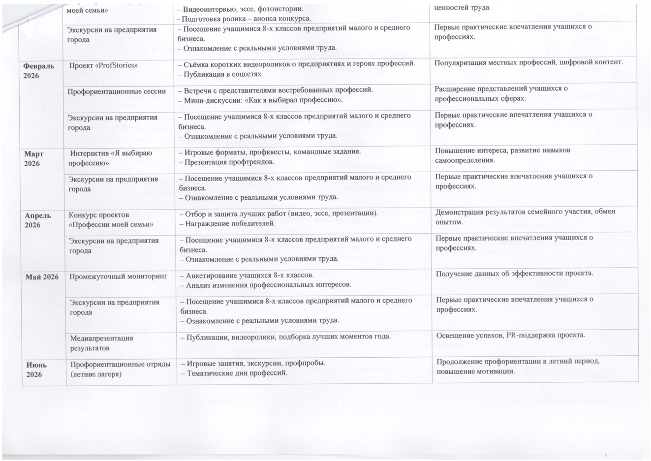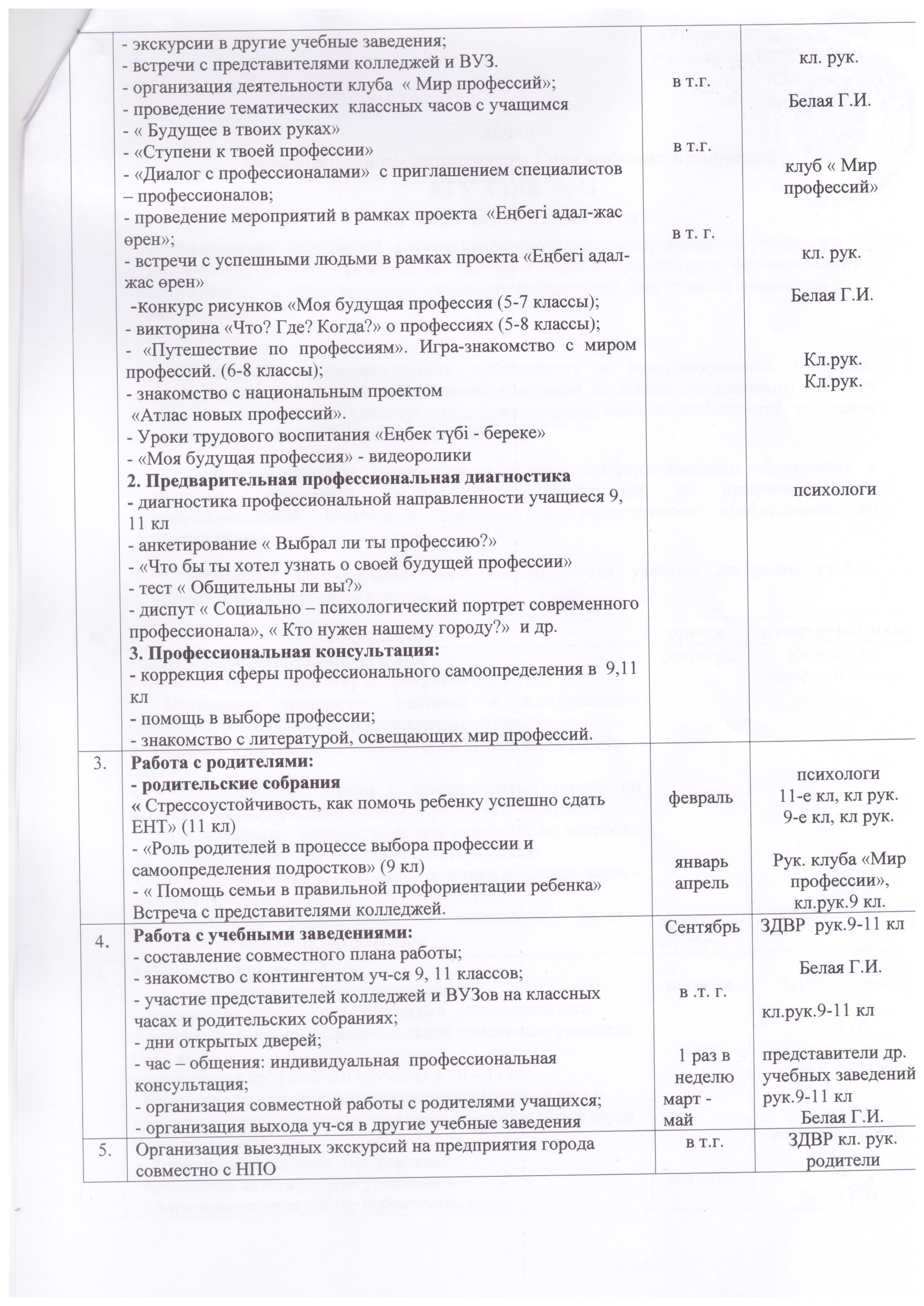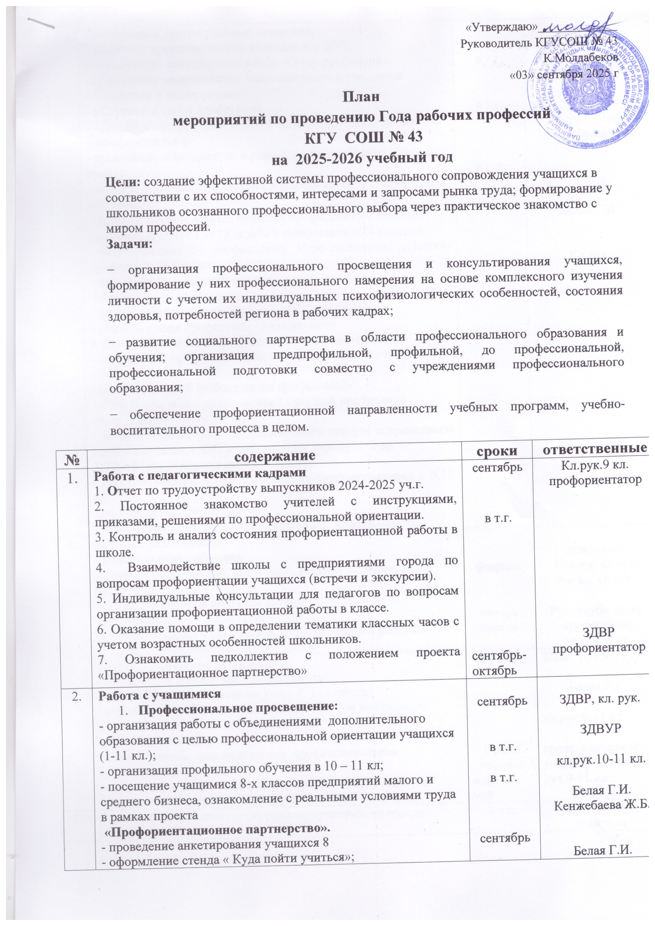 2025-2026 оқу жылына кәсіптік бағдар беру бойынша жұмыс жоспары