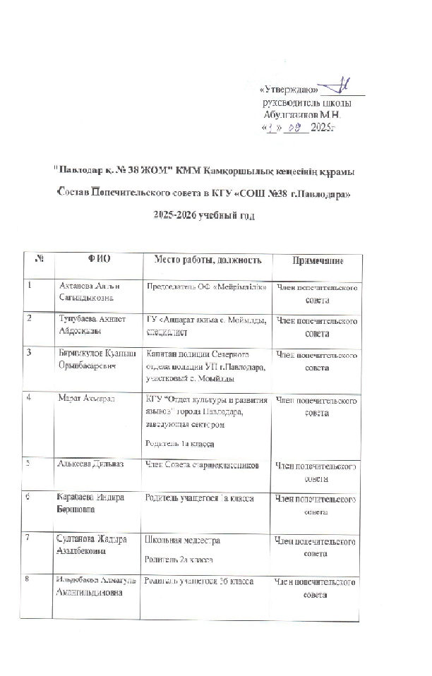 Павлодар облысының білім беру басқармасы, Павлодар қаласы білім беру бөлімінің "Павлодар қаласының №38 негізгі жалпы білім беру мектебі" КММ