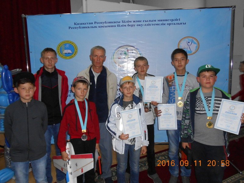 С 4 по 12 июля 2016 года в г. Алмате прошёл Открытый чемпионат РК по авиа и ракето модельному спорту, VIII-летняя спартакиада среди учащихся школ и колледжей. Наши воспитанники стали призёрами в следующих номинациях: Авиамодели Калинин Олег 1- место авиамоделирование (F-3-J), 1-место радиоуправляемые (радиопланер), 1-место авиамоделирование (F-3-J), 2-место авиамоделирование (F-1-B), 3-место авиамоделирование (радиобой); Ислямов Аскар 2- место авиамоделирование (электролет). Руководитель: Соц Сергей Федорович