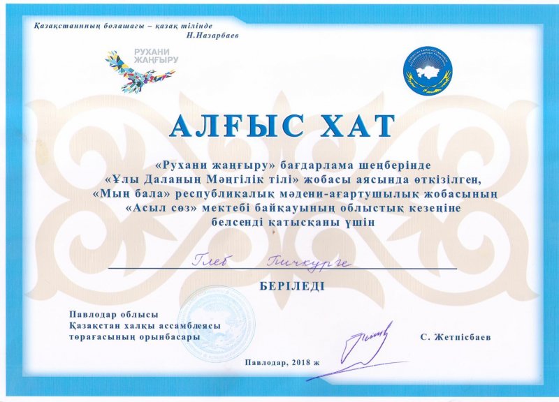 Ученики 4 “В” класса — Оразбай Н. и Шайхина З. про...