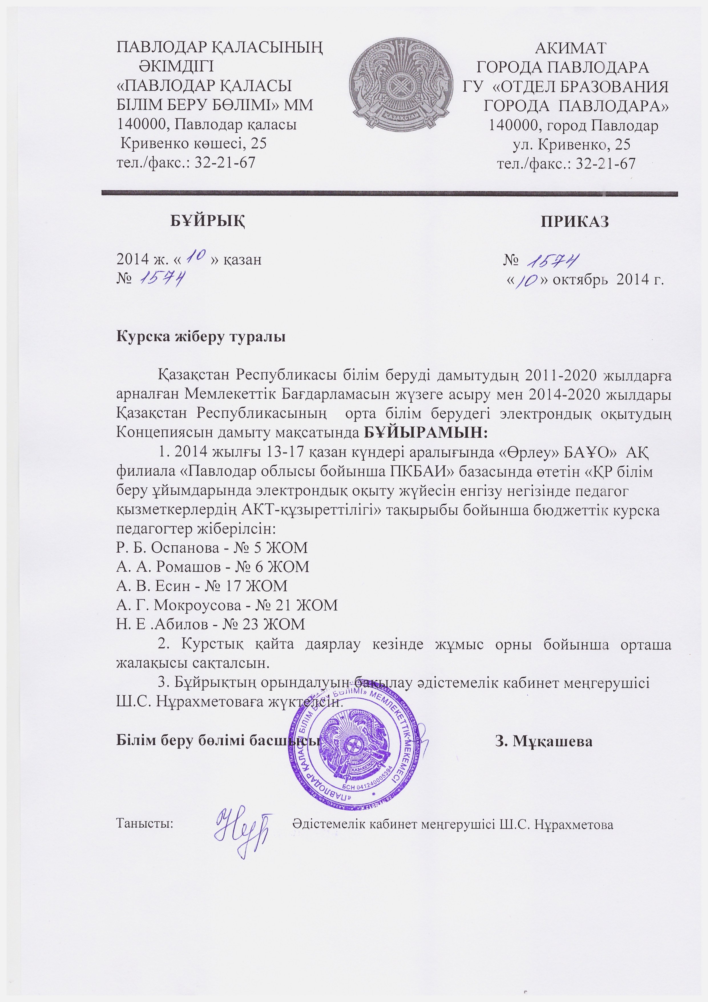 курстарға жіберу туралы | Скачать |
