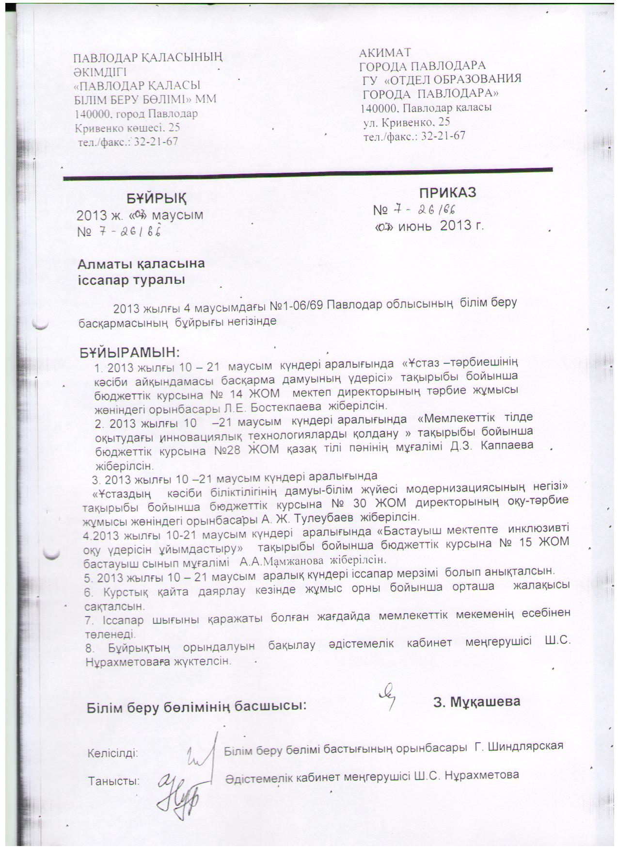 О командировке в Алматы на Республиканские пед.чтения | Скачать Смотреть |