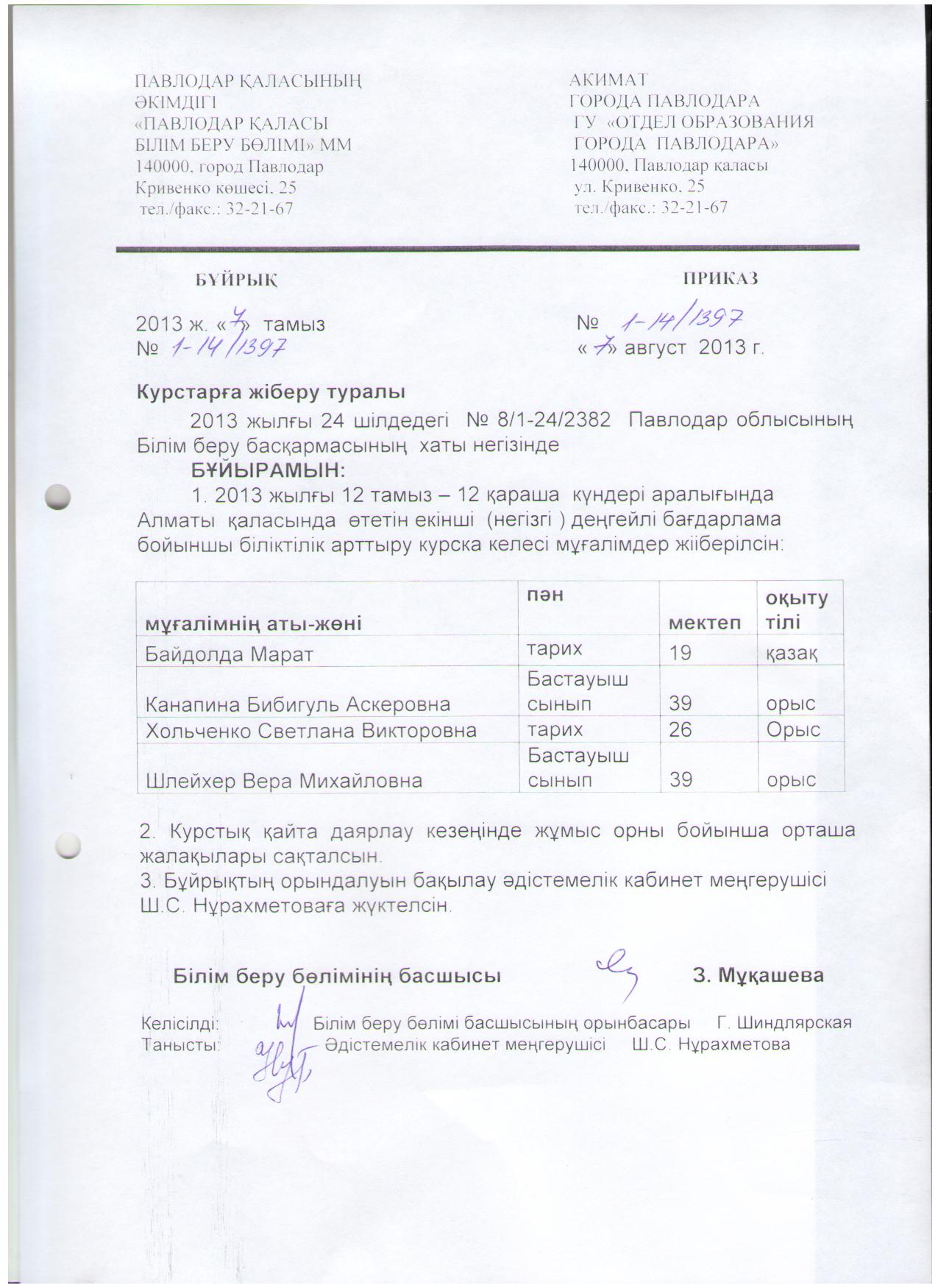 Приказ на курсы второго уровня | Скачать |