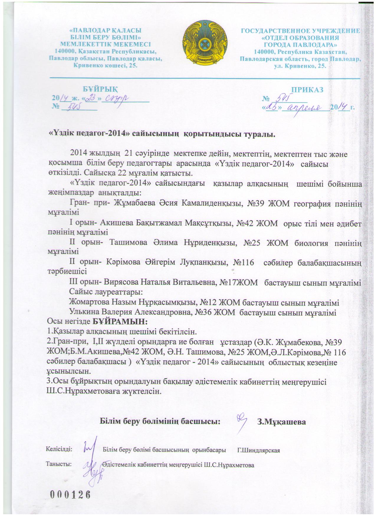 Об итогах конкурса "Лучший педагог-2014" | Скачать |