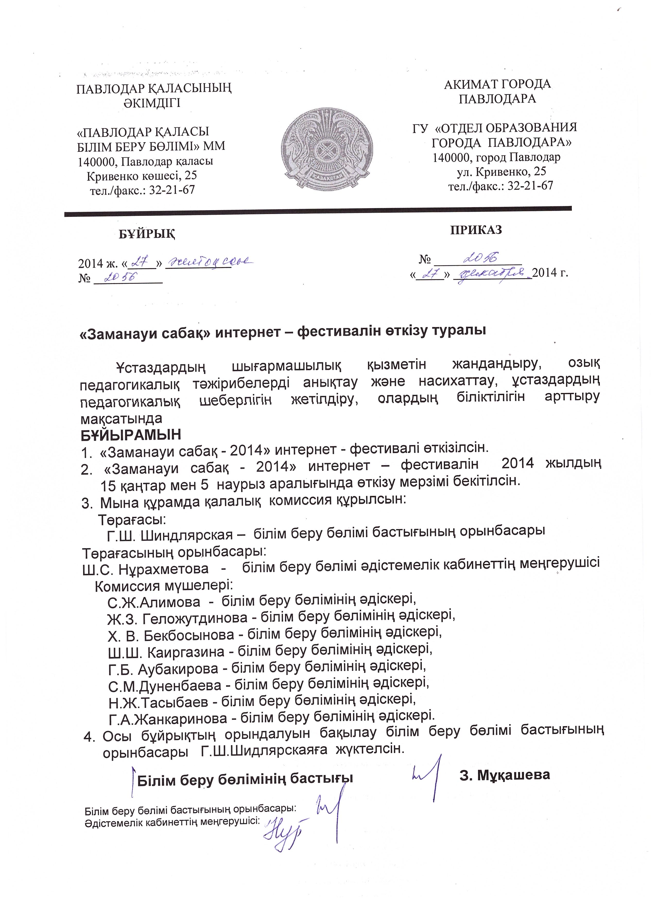 "Заманауи сабақ 2014" интернет-фестивалін өткізу туралы