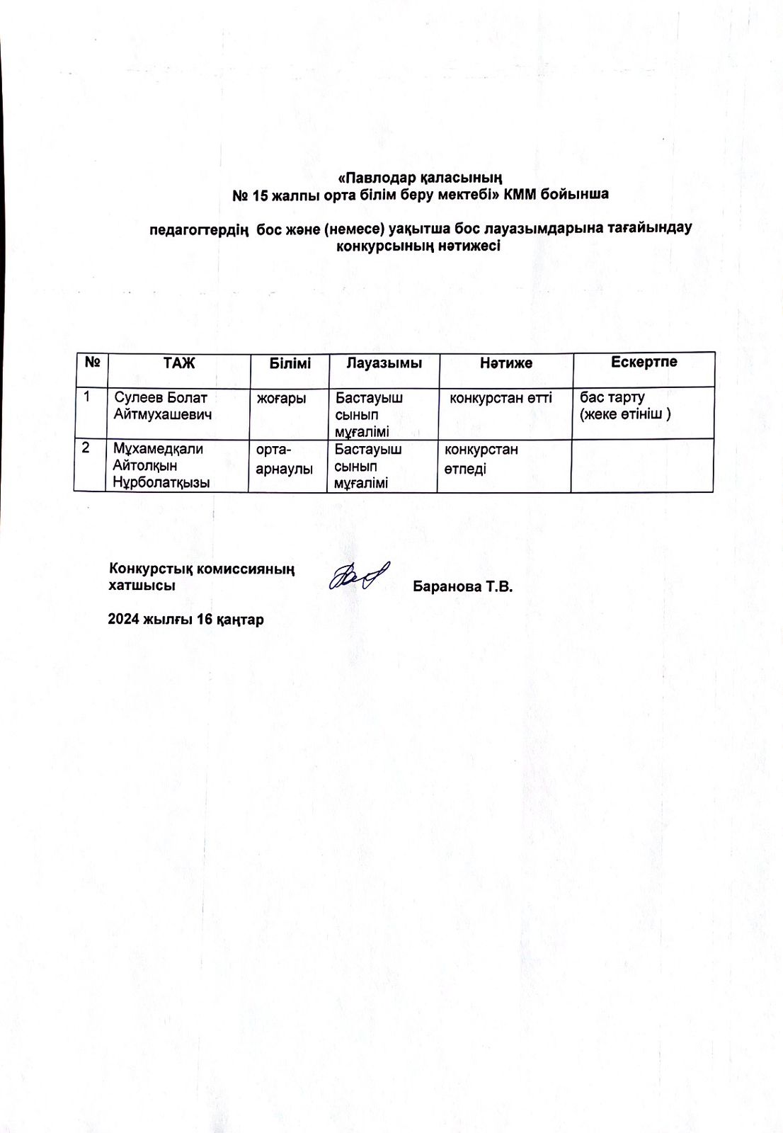 Результат конкурса по КГУ "Средняя общеобразовательная школа 31 г.Павлодара" на должность учителя химии временно | көшіріп алу |