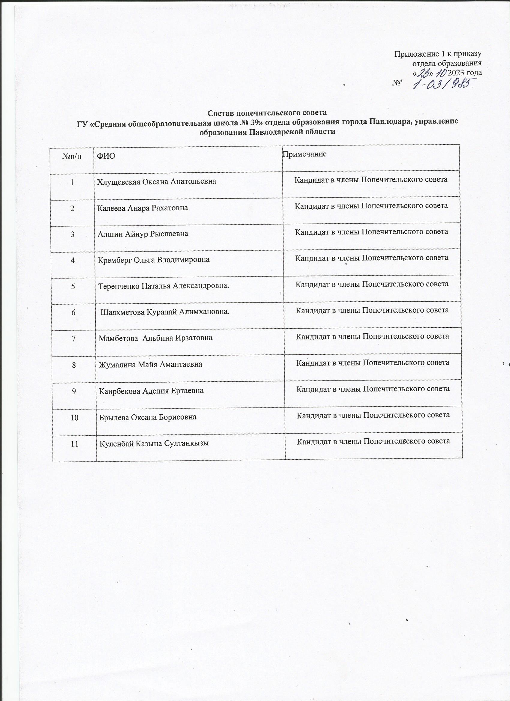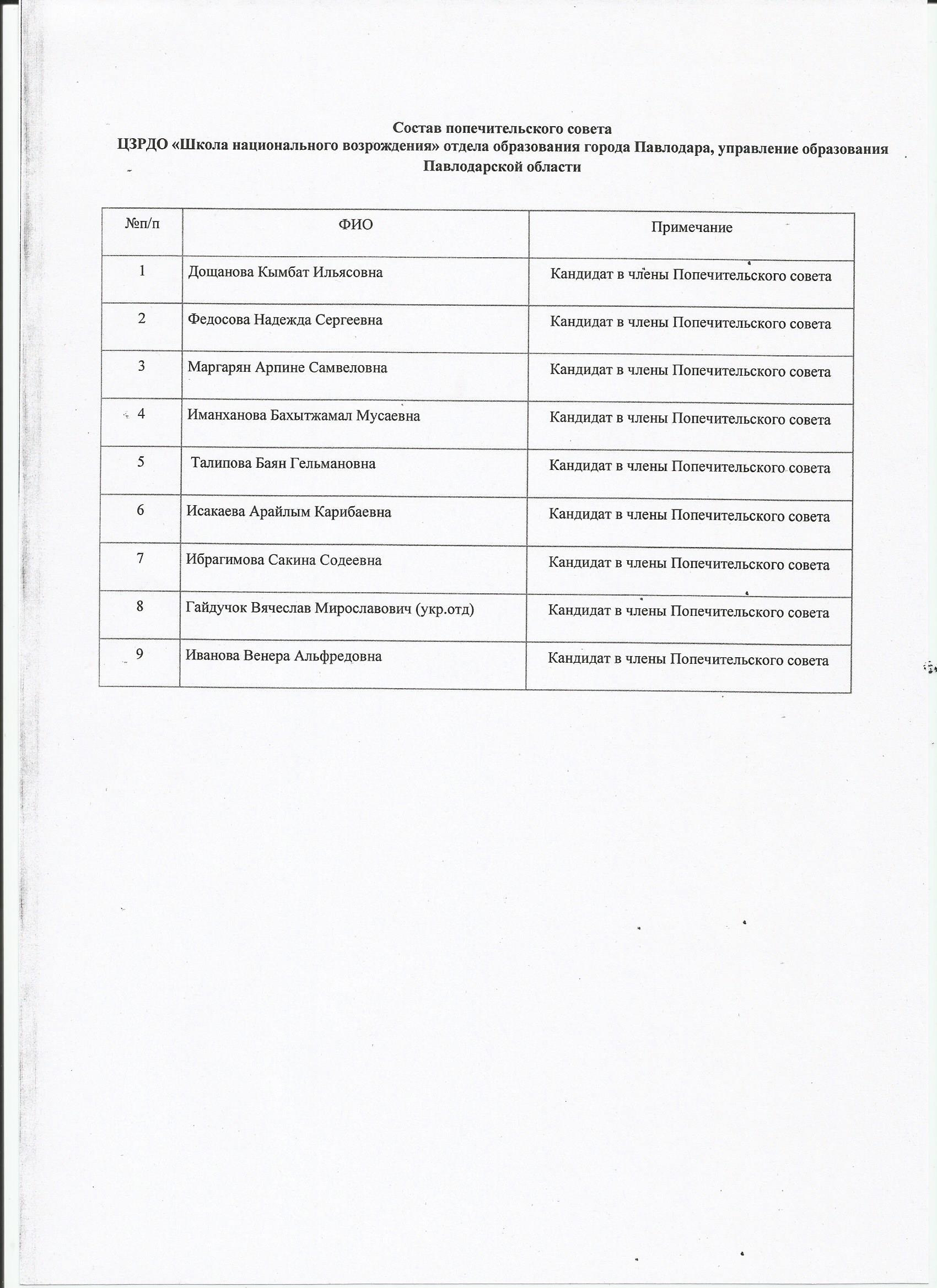 Состав попечительского совета