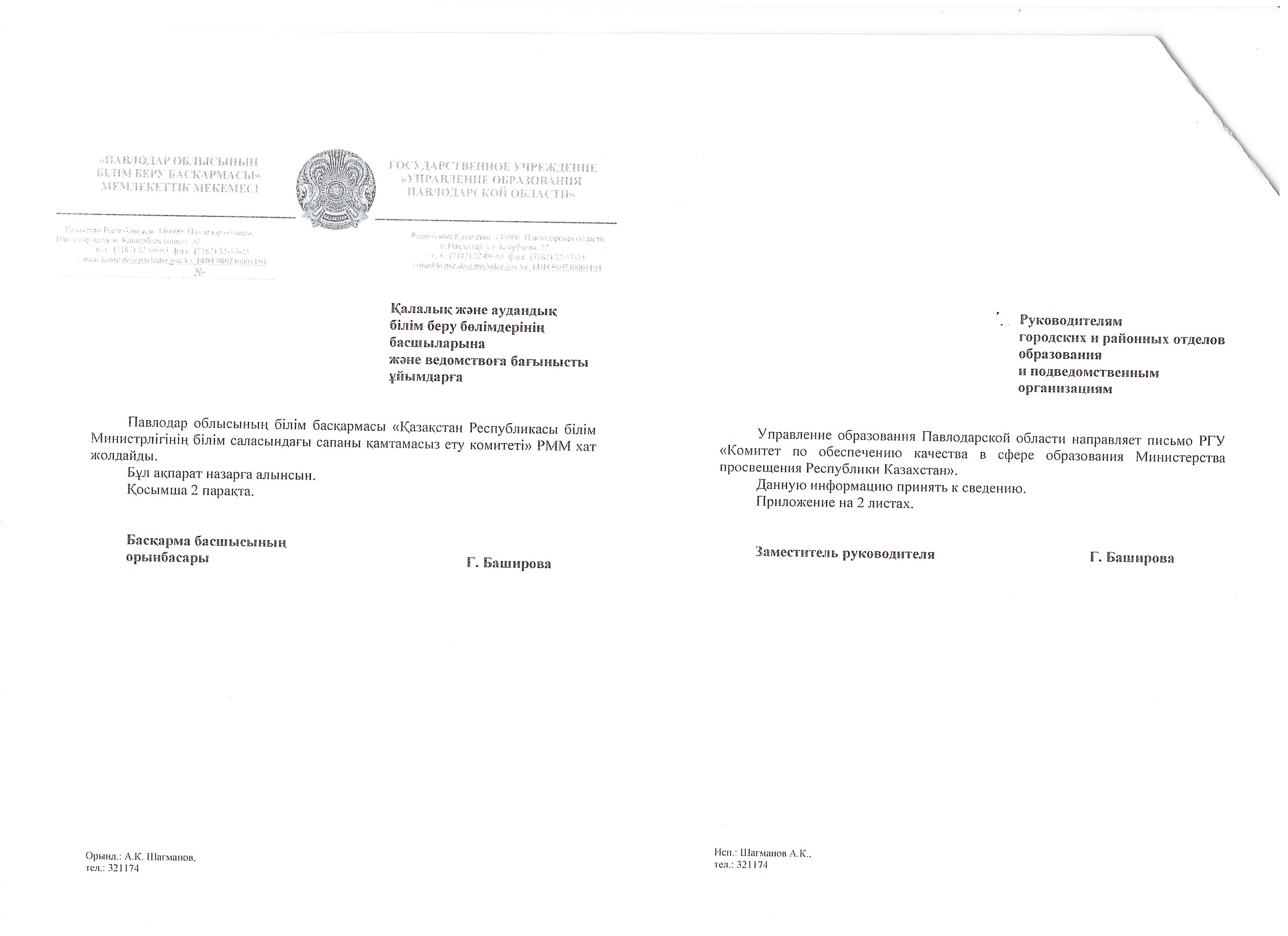 письмо ГУ "Управление образования Павлодарской области" | Скачать |