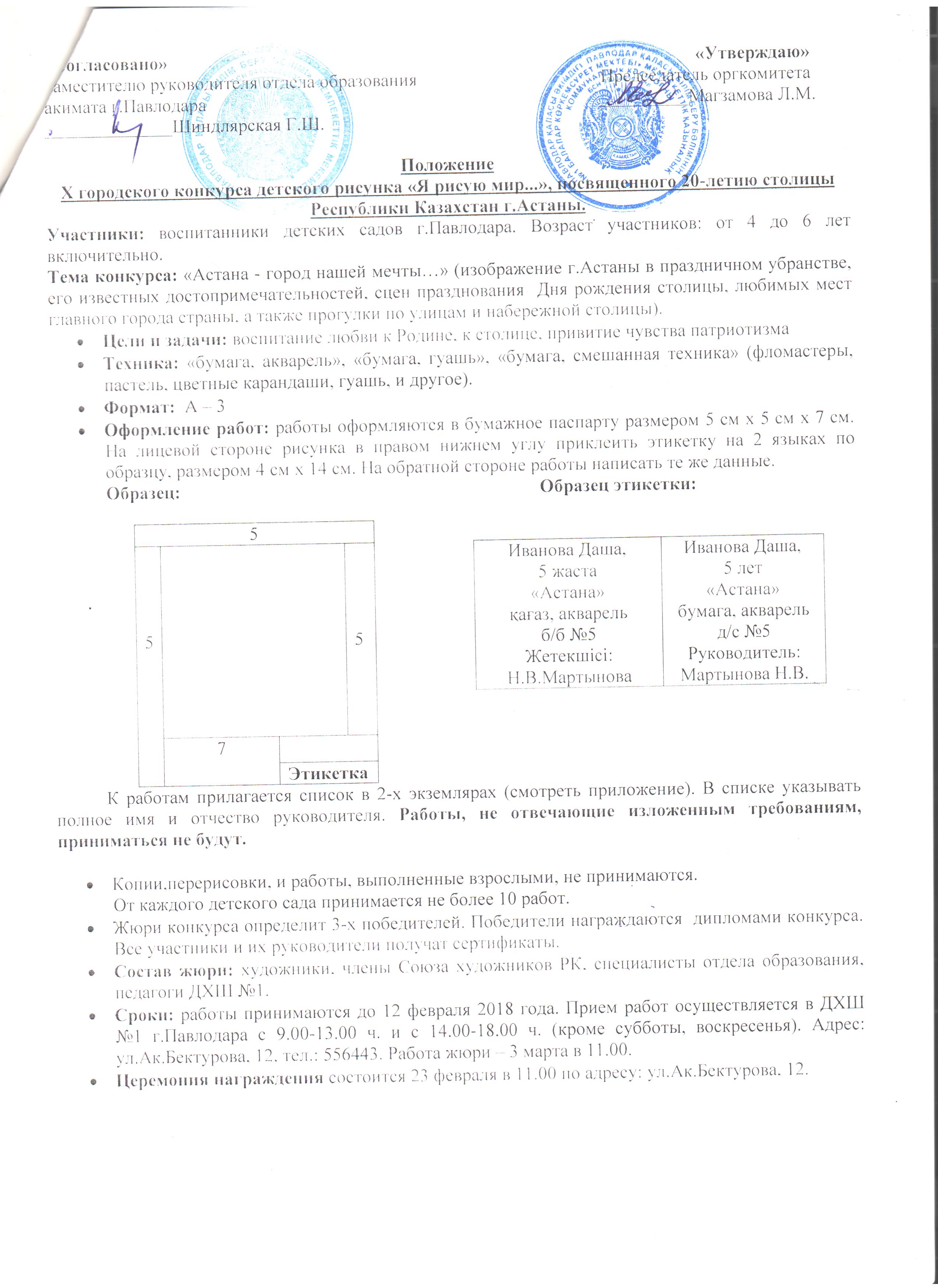 Положение Городского конкурса детских рисунков «Родной Иртыш», посвященный 85-летию Павлодарской области, в рамках программы «Рухани жангыру» | Скачать Смотреть |
