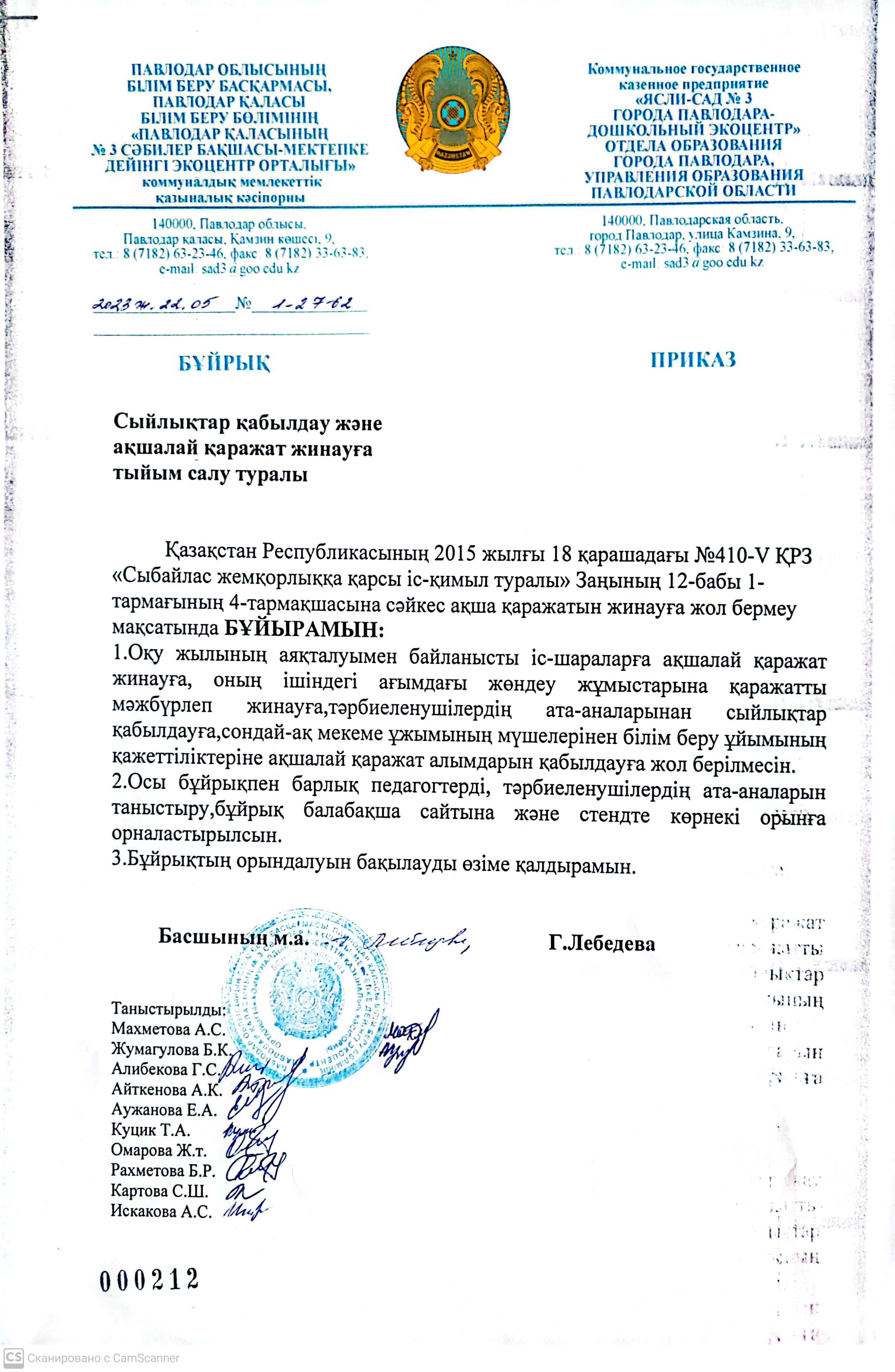 Приказ О запрете сбора денежных средств, принятия подарков от 22.05.2023г. | Скачать |