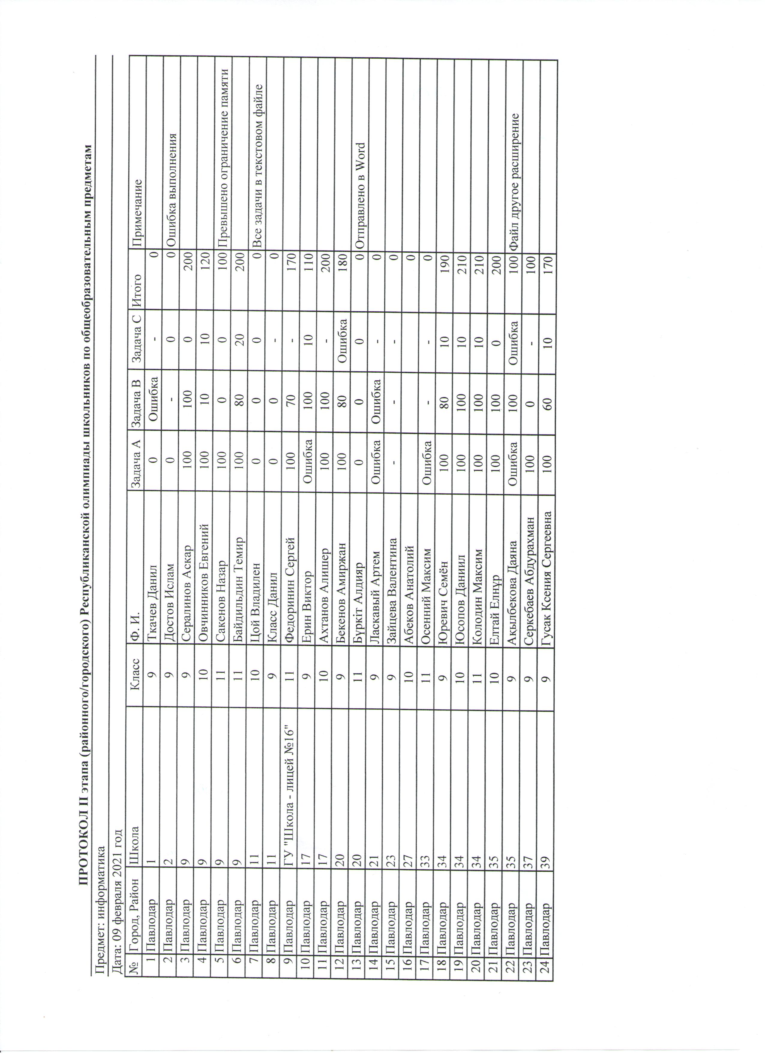 Результаты предметной олимпиады Информатика | Скачать |