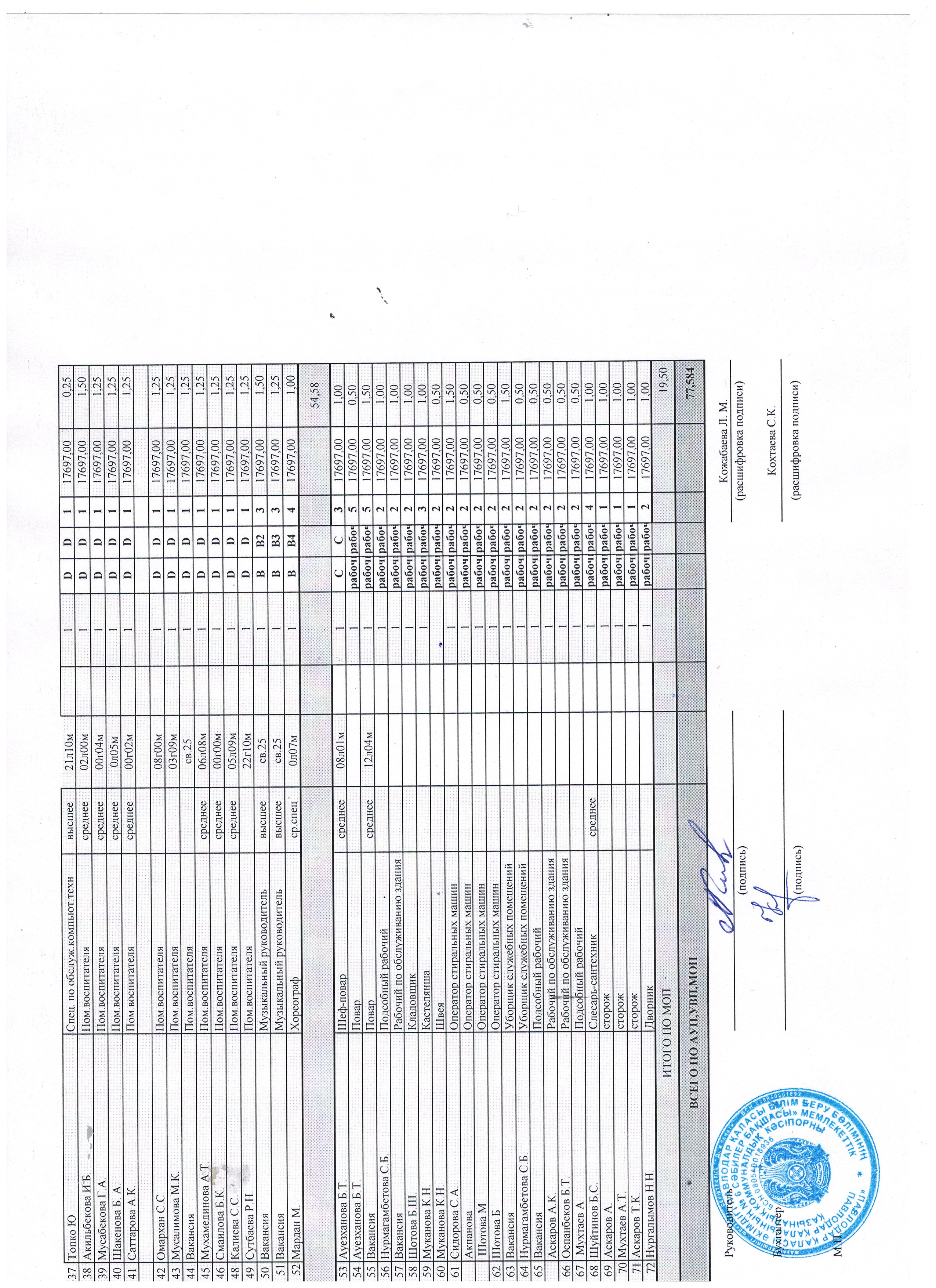 Штатное расписание на 1 сентября 2019 года, 2 часть | Скачать |