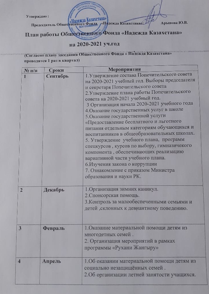 Выписка из протокола №3 заседания Общественного фонда «Надежда Казахстана»